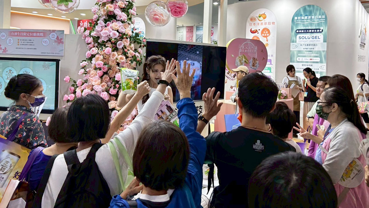 珮庭團隊於展館內進行包含各種產品說明介紹、打卡造勢活動、產品派樣、飲品試喝及舞台區聚客與產品介紹等導客活動,成功帶動展場人流及銷售業績,受到台酒生技高度肯定。
