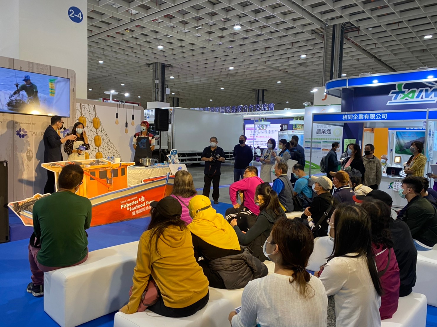 「珮庭整合傳播顧問」於本年度活動負責展中活動舞台設計及產品發表會活動排程規劃,於展中活動「漁人舞台」區設計出擬真漁船造型背板,呈現出寫實漁業風格的創意舞台,讓民眾在視覺上有耳目一新的感覺。展中舞台活動首日以中文現場介紹每一場精彩的產品發表及料理秀活動,後兩日舞台活動特別規劃全程英文介紹並線上直播,滿足國內外無法到場參與這場盛會的民眾及買主,透過直播觀賞方式協助參展廠商跨越時間與空間限制。