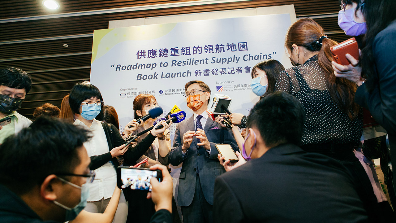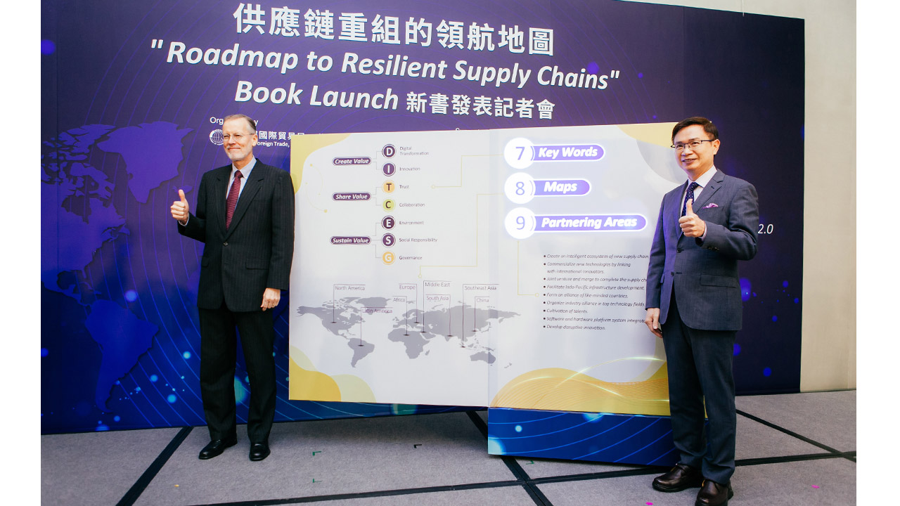 2021年臺灣已站上全球供應鏈重組的前導舞台,自COVID-19疫情爆發的一年多來,全球局勢發生巨大變化,外貿協會以數位轉型、國際合作打造可信賴韌性供應鏈全球供應鏈重組浪潮下,為了協助業者掌握先機,鏈結國際夥伴打造韌性供應鏈,在經濟部與國際貿易局的支持下,結合美國在台協會AIT的協力合作,出版《供應鏈重組的領航地圖》一書,並於5月6日辦理新書發表記者會。