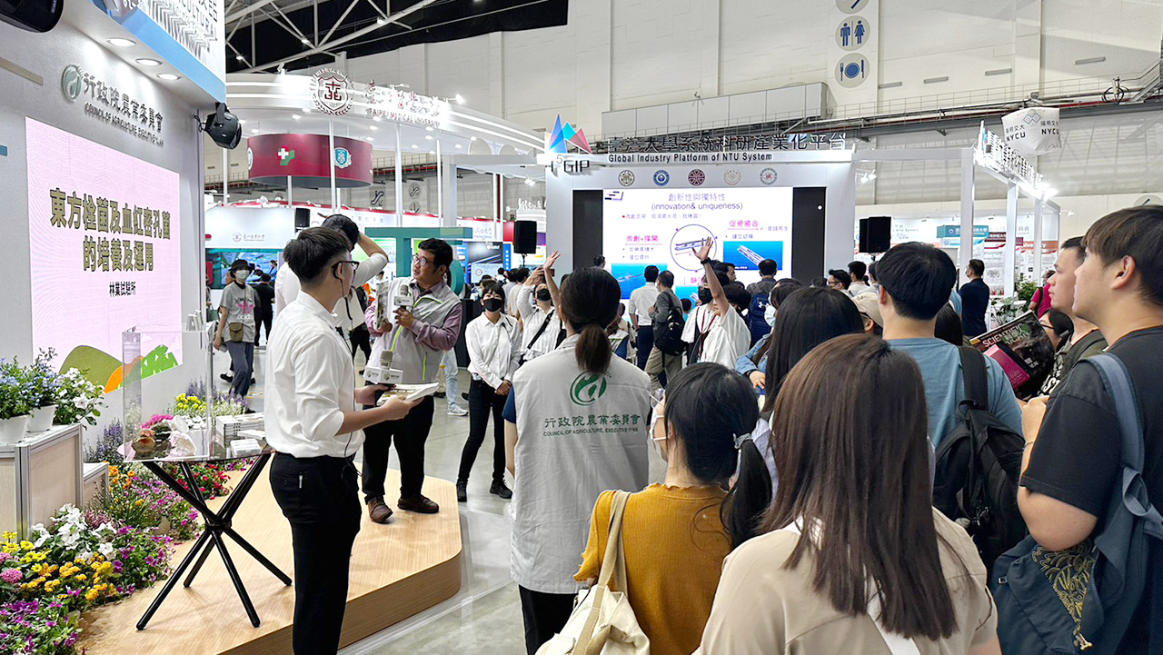 農業部於「2023亞洲生技大展」設置「農業科技館」展示旗下試驗改良場所、農業科技研究院以及與國內大專院校合作之最新研發成果,具體呈現農業科技之先進技術與創新應用成果。