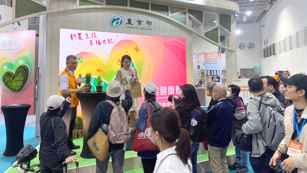 農業部於「2023台灣醫療科技展」中設置「農業健康館」,作為精準健康生態體系的一份子,延續歷年「新農生技、幸福世紀」之展示主軸,規劃4大主題專區,展示與人類身心健康相關的農業生技研發及產業化成果。