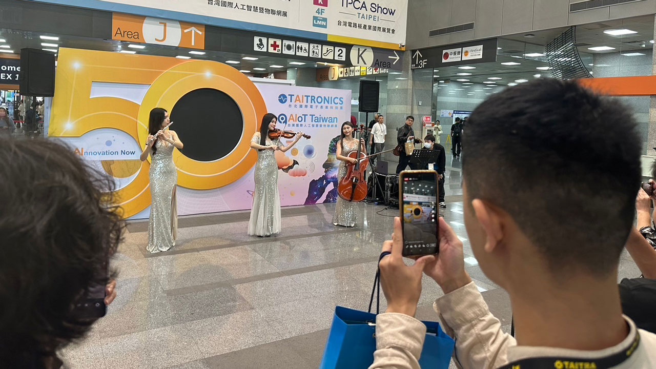 本屆台北國際電子產業科技展為第50年,特地於展覽第二天在展覽入口舉辦快閃音樂會,邀請管弦樂團以「生日快樂」為主題演奏組曲,進行30分鐘精彩的快閃表演,創造展場歡樂氛圍,與參觀者一同歡慶展覽50周年,也會參觀者留下驚喜的美好回憶。