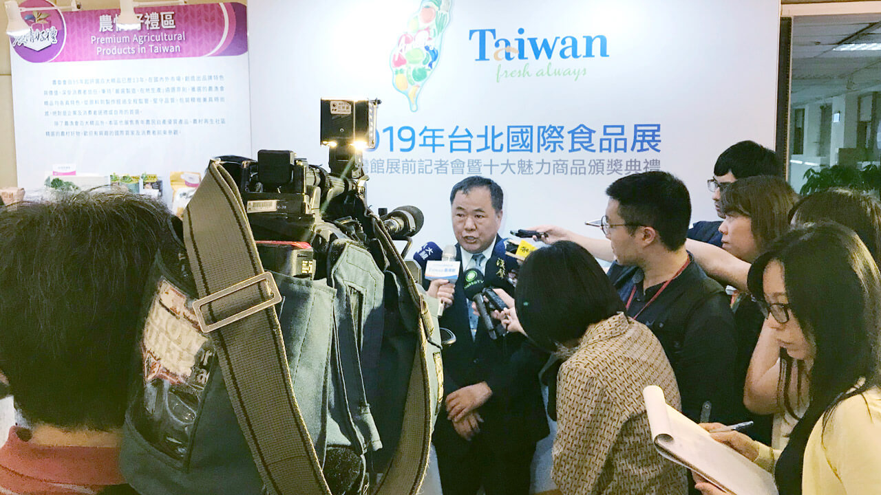 農委會在「2019年台北國際食品展」以「臺灣豐味好食在,Amazing Taiwan」為主題籌組的「臺灣館」參展,引領台灣在地食材邁向國際。並於展前舉辦記者會,創造臺灣館聲勢。