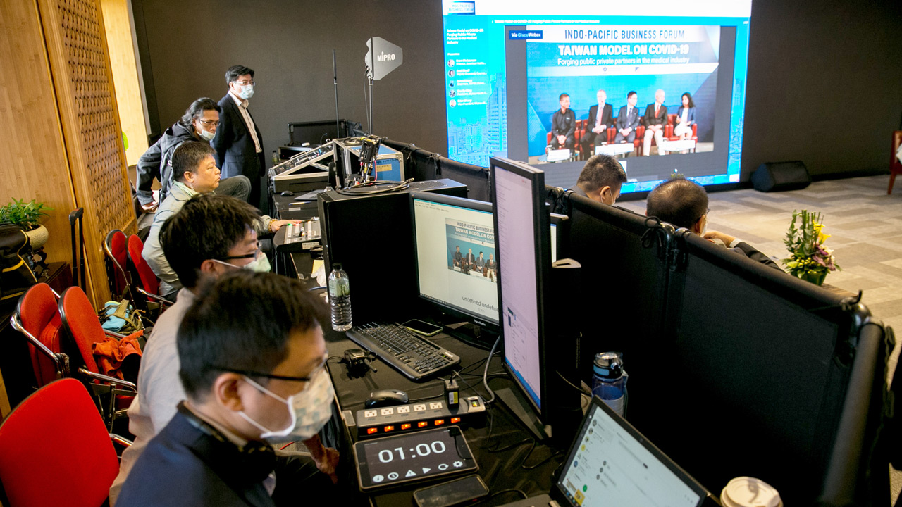 而本年度中華民國對外貿易發展協會首次在印太商業論壇( Indo-Pacific Business Forum )舉辦以台灣為主題的會議,並透過網路直播在10月28日12時35分由緯創醫學科技副總經理莊詔仁、外貿協會董事長黃志芳,以及敏成股份有限公司董事長古思明,以《新冠肺炎台灣模式:打造醫療產業的公私部門夥伴關係》(Taiwan Model on COVID-19: Forging public private partners in the medical industry)為題與談。透過不同領域的代表,分享台灣此次卓越的武漢肺炎防疫經驗,以及台灣如何打造醫療產業公私合作模式。並透過網路平台,收集線上來自國際間與會者之相關詢問,透過網路直播由在台北會場的與會專家即時回覆與國際友人互動。珮庭團隊於活動期間迅速有效率建置台灣活動會場相關的軟硬體佈置及流程管理,與遠在越南的主辦單位進行網路溝通平台測試彩排、開啟會議直播平台,讓台灣專家能夠順利透過線上參與本次論壇進行發表,同時邀請貴賓蒞臨台灣會場共襄盛舉,順暢完成本次活動,達成良好的國際參與會議成效。