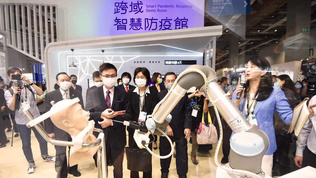 「台灣國際醫療暨健康照護展」,環扣「健康」、「醫療」、「照護」、「智慧醫療」、「新創」,構築完整的醫療照護生態體系,是「台灣唯一健康照護產業外銷專業商務平台」。今年全球籠罩在Covid-19疫情之下,我國防疫表現優異,工業局特別籌組「跨域智慧防疫館」,從防護用品生產線設備到口罩與防護衣產品,以及檢測試劑到疫苗,還有遠距醫療等與智慧照護,完全展現臺灣業者跨域整合力及堅強的科技防疫實力。