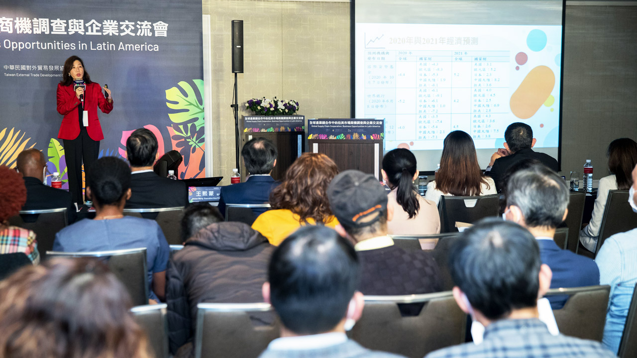 2020年因新冠肺炎疫情影響,阻斷了國際貿易的網絡,因此全球產業供應鏈重組,外交部為了讓台灣企業抓住加入全球的產業鏈,聯合外貿協會辦理「2020全球產業鏈合作中的拉美市場商機調查與企業交流會」,透過市場調查協助分析在拉美投資布局或拓銷的成功案例,並邀請長年研究國際經貿法及區域經濟等相關議題的中華經濟研究院徐遵慈主任,發表我國產業在拉美布局的潛力與方向。